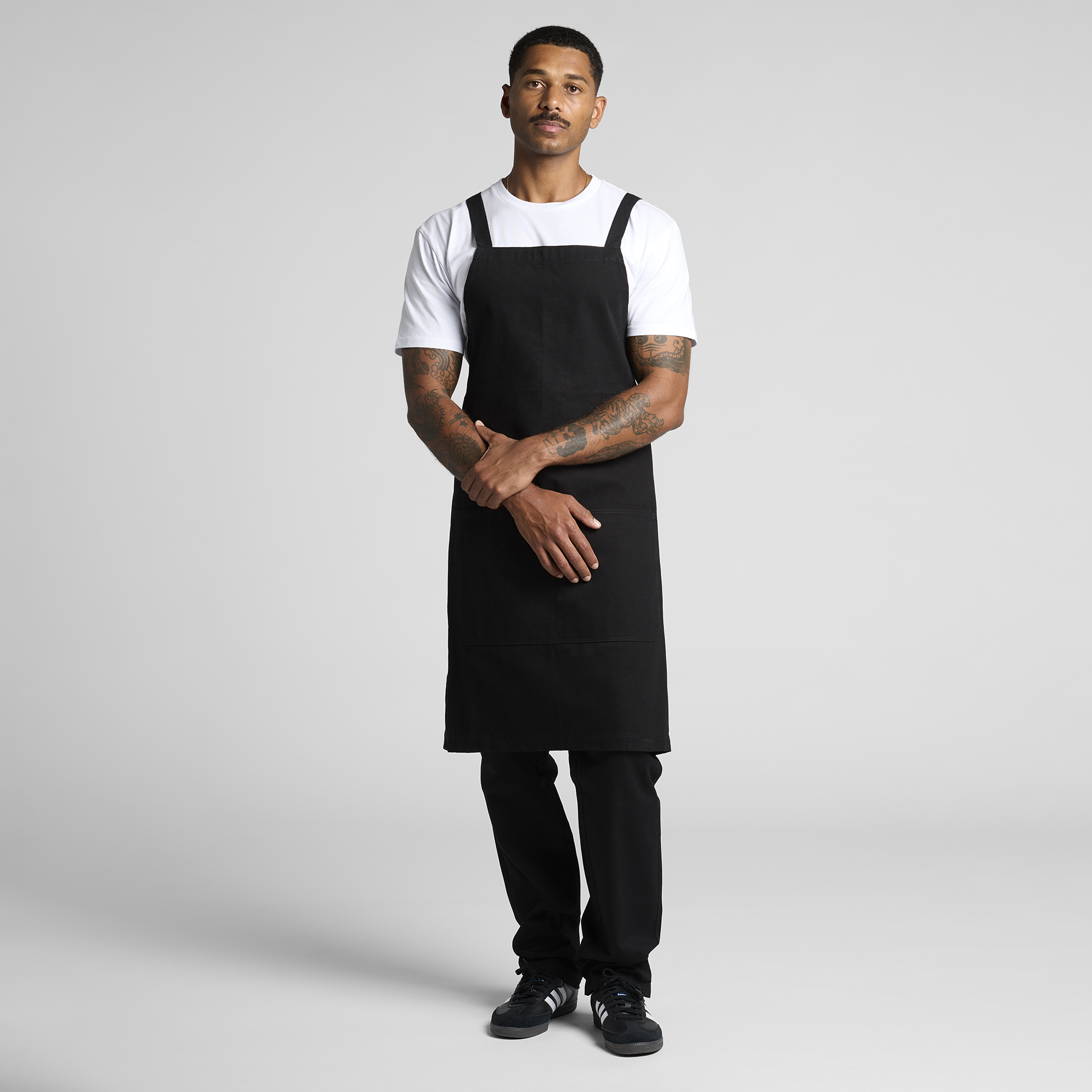 Construction: Herringbone cross over shoulder strap, metal eyelets, front patch pocket, top stitch detailing, preshrunk to minimise shrinkage